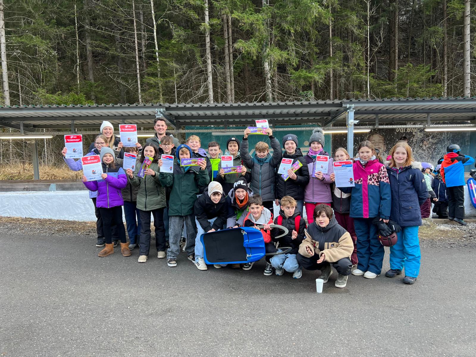 Rasante Abfahrten im Eiskanal – die 2b der SMS Nüziders auf Rodeltour Ein echtes Winter-Highlight erlebte die Klasse 2b der SMS Nüziders. Auf Einladung des Rodelclubs Sparkasse Bludenz durften die Schülerinnen und Schüler gleich mehrfach den gut gebuchten Eiskanal in