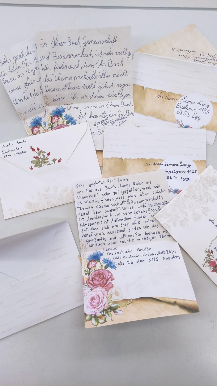 Im zweiten Schritt arbeiteten die Schülerinnen und Schüler in Gruppen und verfassten Briefe an den Autor Simon Lang. Darin teilten sie ihre Eindrücke, stellten Fragen und brachten ihre eigenen Gedanken zur Geschichte zum Ausdruck. Diese Aufgabe förderte nicht nur die schriftliche Ausdrucksfähigkeit, sondern auch die Fähigkeit, sich in andere Perspektiven hineinzuversetzen und eigene Meinungen zu reflektieren.